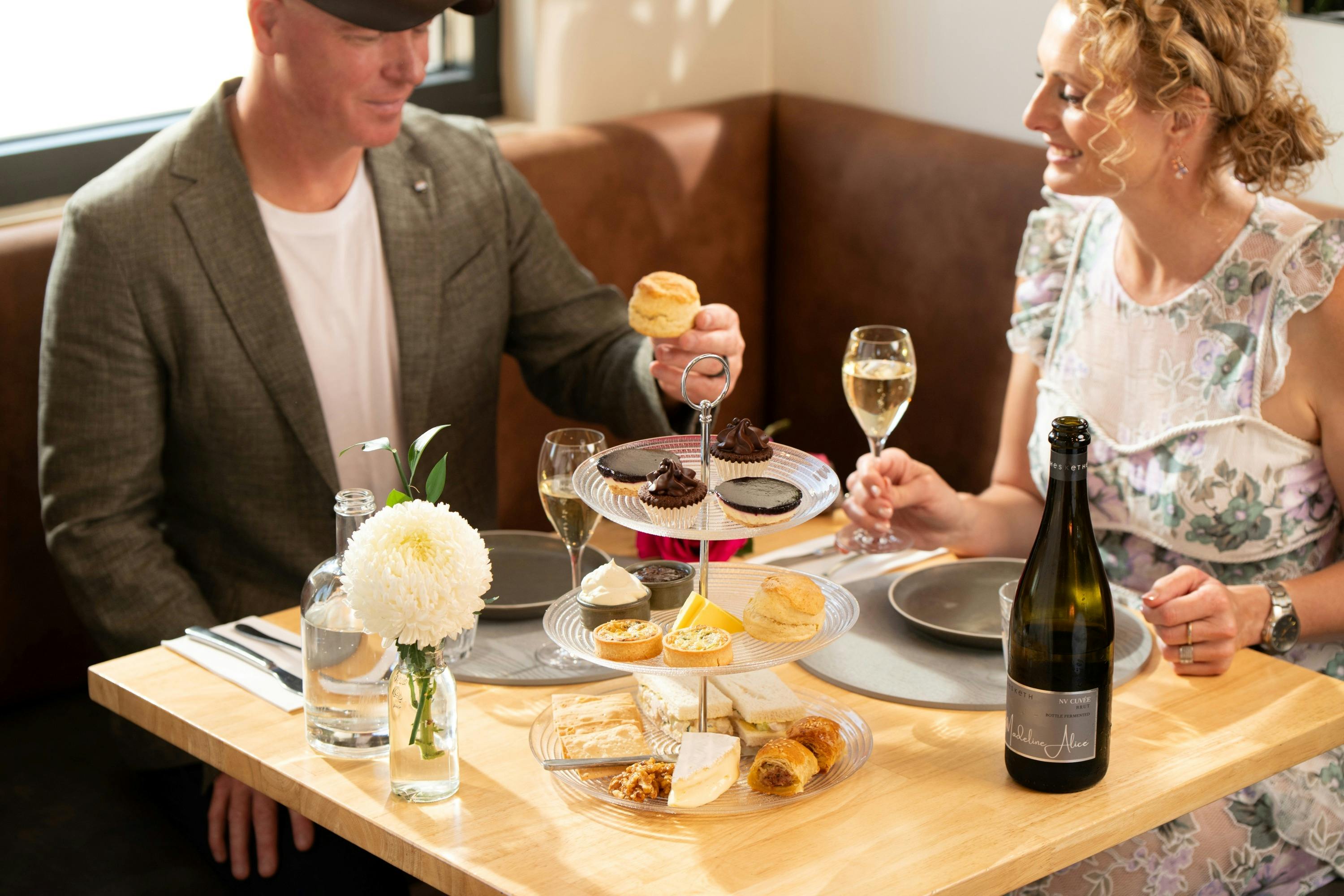 Each guest receives a beautifully presented selection of house-made pastries, cheeses, desserts, and savoury treats—paired with a glass of Sparkling Wine or a refreshing Mimosa.